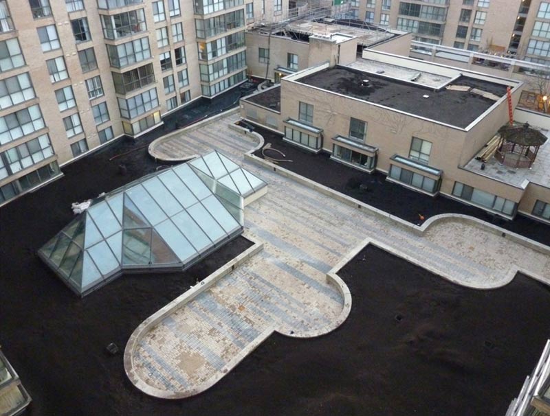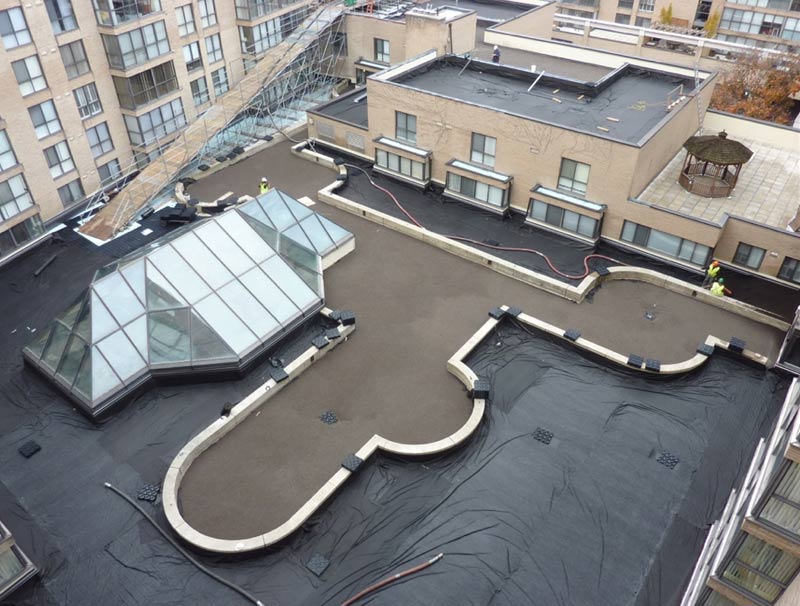- Inverted elastomeric membrane with custom deck finishes.